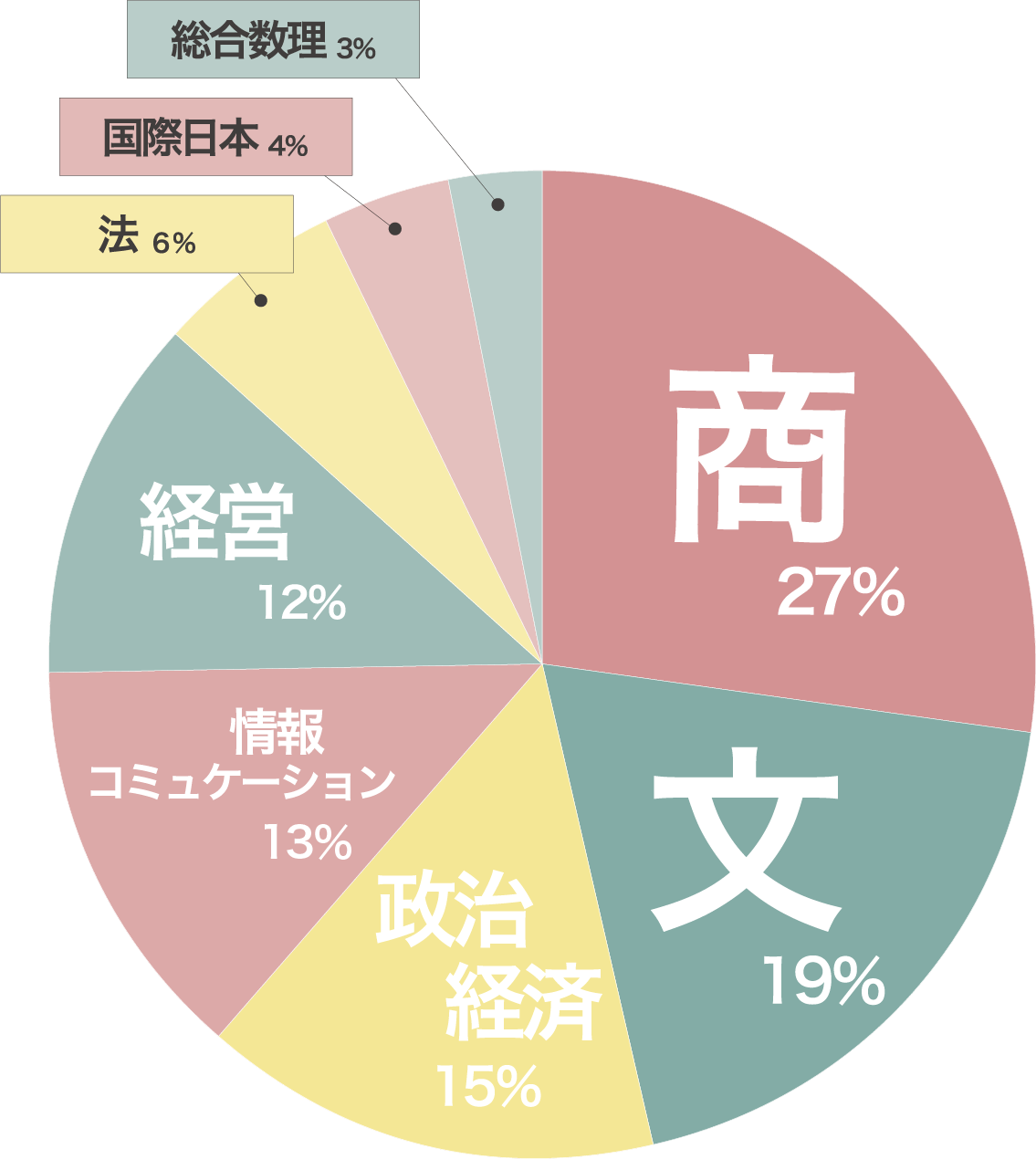 商学部と文学部が多いですね!