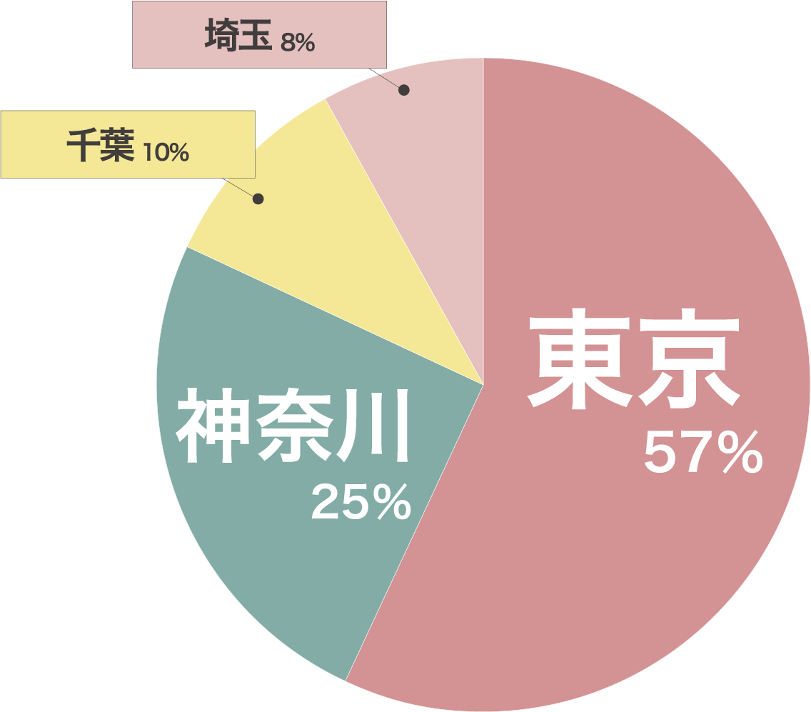 東京都、次いで神奈川県から通っている人が多いです。